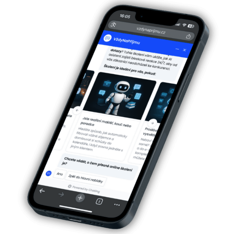Během pár minut uvidíte, jak přesně AI asistent zachytí návštěvníka, odpoví a promění ho v poptávku.